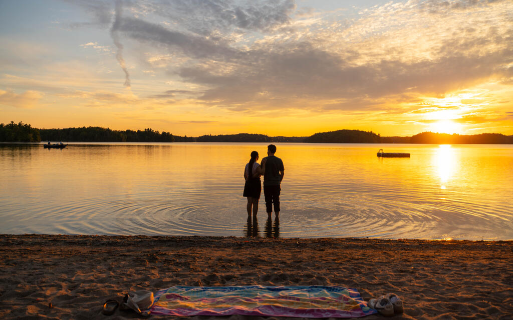 - After dinner, head back to the water for an evening swim or a quiet walk along the shoreline as the light fades. As the sun drops, return to the beach and watch as the light stretches across the lake.