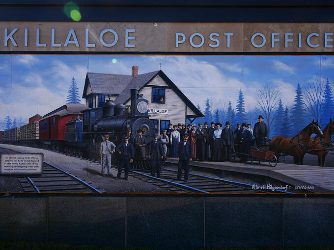 Instead of devouring a dessert for brunch, I steamed back in time with Killaloe’s rail history in the heart of town. I admired the mural at the post office, strolled through Killaloe Station Park to the Covered Bridge, then to the Killaloe Information Center before continuing my road trip.