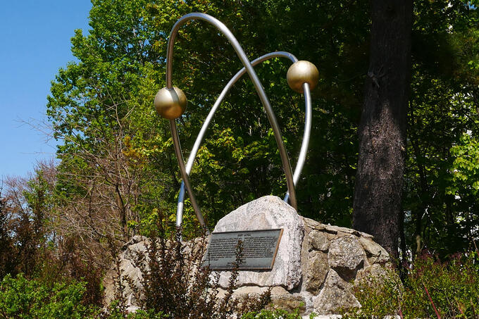 An old Caboose was getting a new coat of paint, I found a Uranium Atom sculpture on the lawn, and somewhere on the grounds was the Steamboating on the Upper Ottawa River Historical plaque. I didn’t spot the plaque, blaming the sweat dripping into my eyes and my increasing hunger.