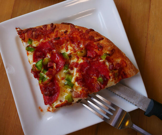 As the oven heated, a local called across the dining room, “The pizza is delicious!” and Shirley (she’s worked at the restaurant for 17 years) assured me, “It’s worth the wait.” And it was. I was ravenous - my small meat lovers with olives and green peppers quickly disappeared.