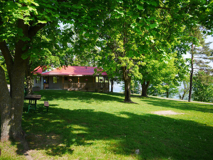 Views of Round Lake and Golden Lake were mostly obscured by tree growth, but it would be a lovely spot for a picnic and the starting point for the Heritage Walk.