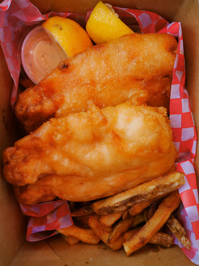 It’s hard to choose where to eat, let alone what to eat, so I had already picked my destination: Brian’s Spuds With Taste! When I arrived - despite having previously reviewed the menu- I couldn't make a decision. I asked for suggestions, and Brian, having heard my difficulties, popped his head out of the window and said, "Get the Fish & Chips."