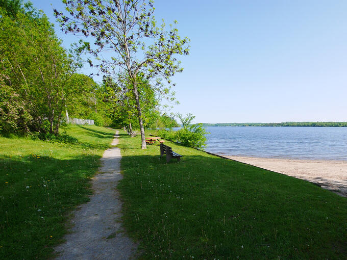 There are plenty of picnic tables for relaxing and a small playground structure for kids in the Veterans Memorial Park. Stretch your legs; follow the walking path down to the lakefront and along the water to Cobden Beach for a pleasant stroll. Sitting and listening to the waves on the shores of Muskrat Lake is a wonderful way to unwind the stress of driving on Highway 17.