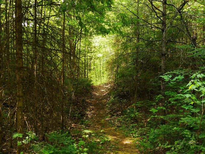 - Park in the gravel lot across from the trail on Forester Road.